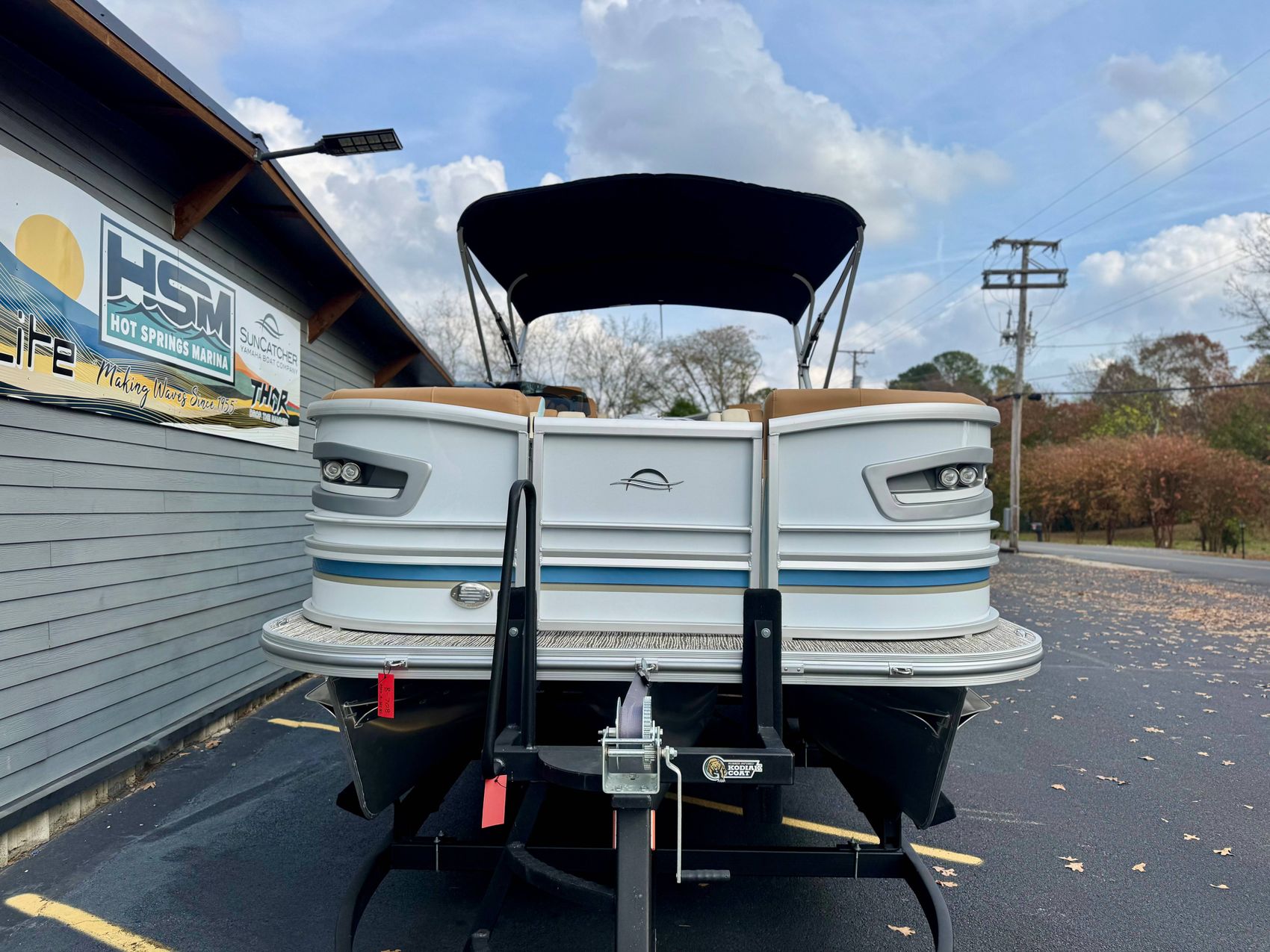 The purchase of this triple pontoon boat comes with a Tandem Axle Bear Trailer, adding significant value to your investment. It's built tough to handle any terrain, letting you take your boat with you, wherever your waterfront destination might be.