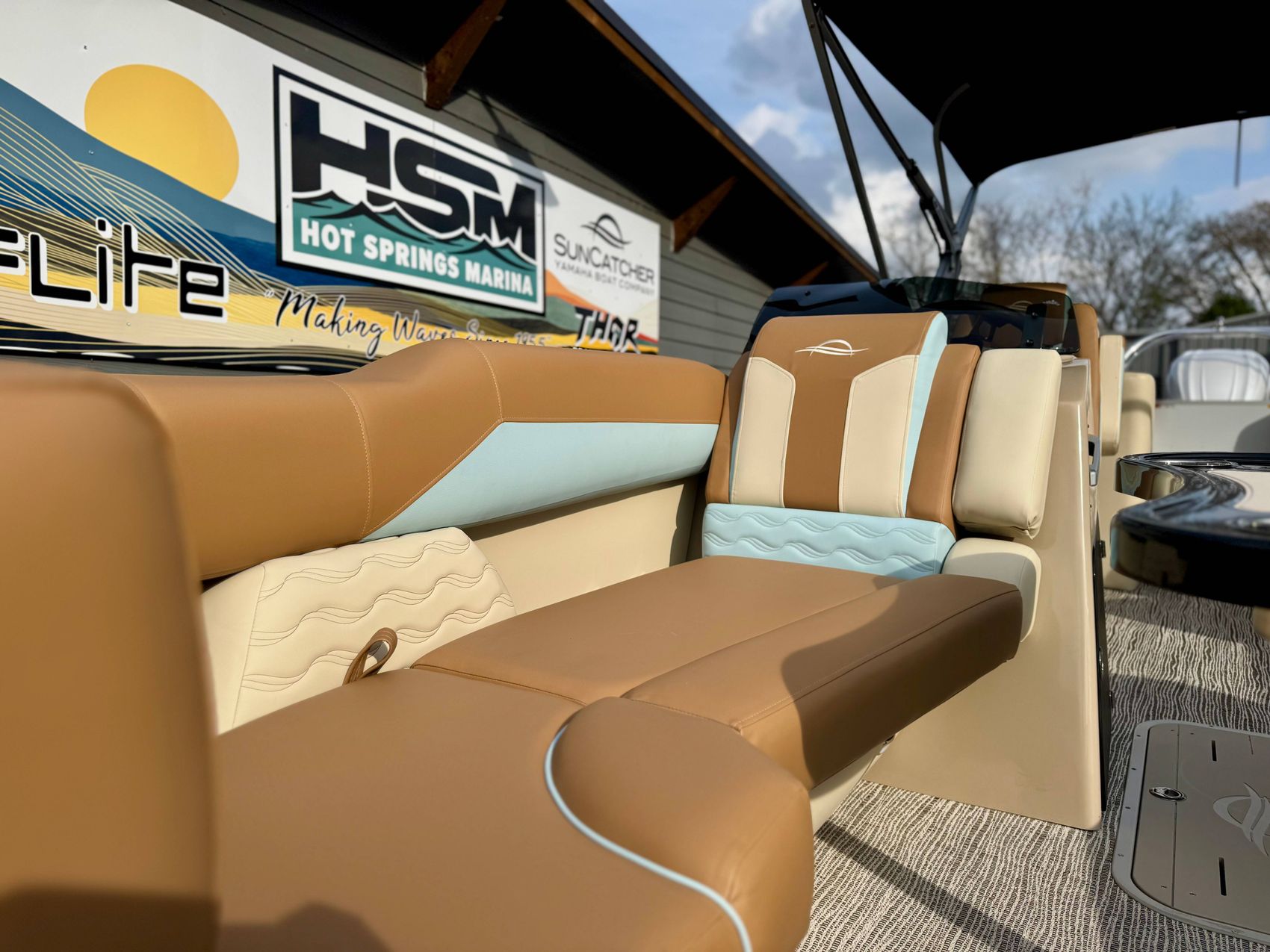 Step into a world of majestic comfort with LED interior lighting that adds a dash of sophistication. Its high-speed Bimini frame isn't just designed to provide shade — it's an integral part of the boat's modern, streamlined design.