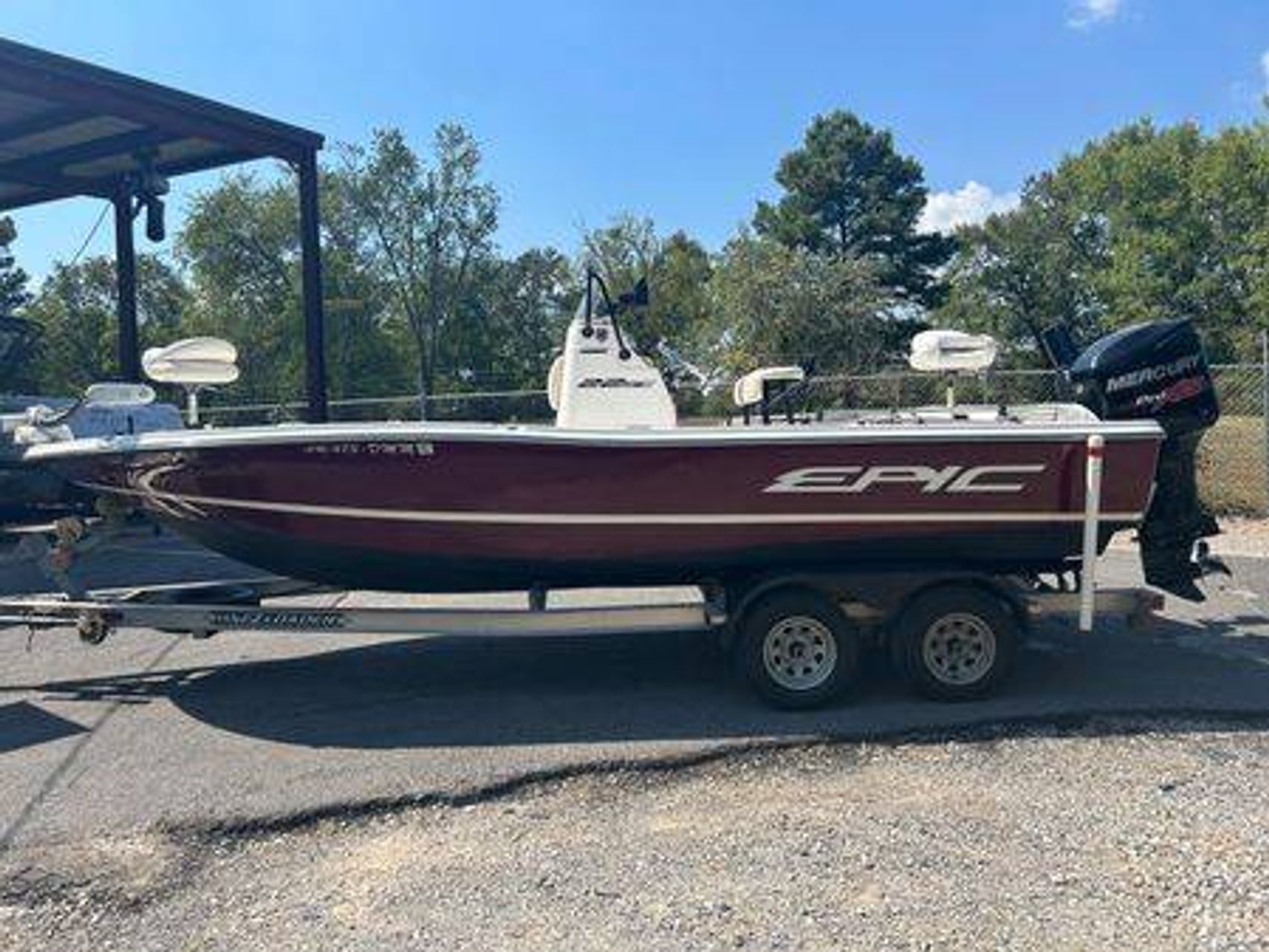 Providing all the features to complete a fisherman's dream, this Epic Sport Console includes a digitally controlled, Minn Kota trolling motor, a Talon down rigger, a massive Humminbird depth finder, and a whopping 250hp Mercury PRO XS Optimax motor equipped with an electronic jackplate. This boat also provides a bimini canvas for those hot days on the water. TRAILER INCLUDED! Basic Boat Info