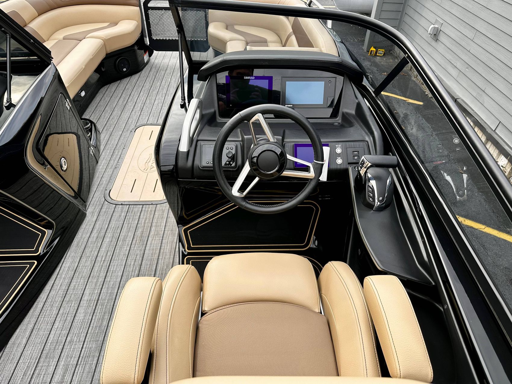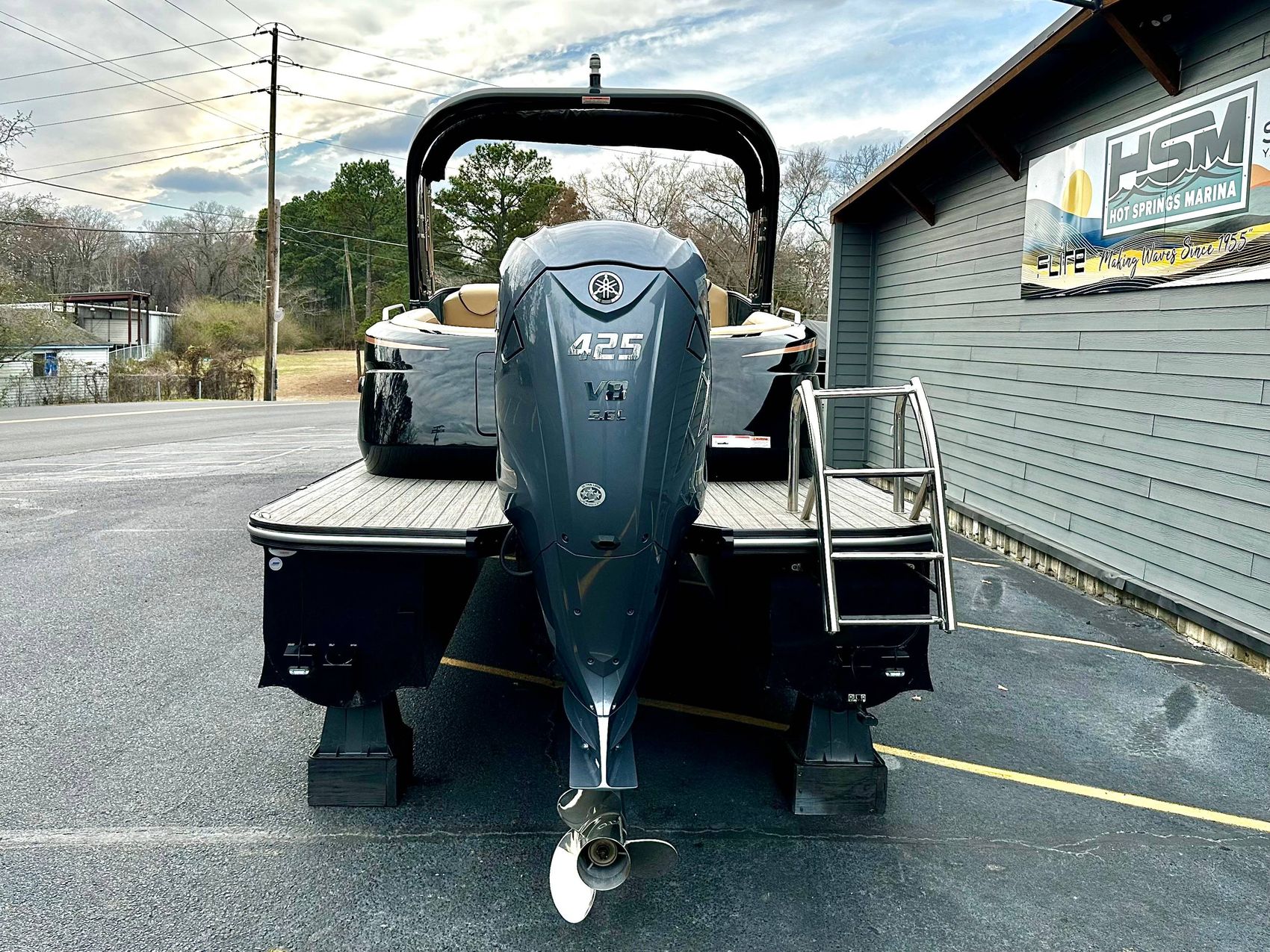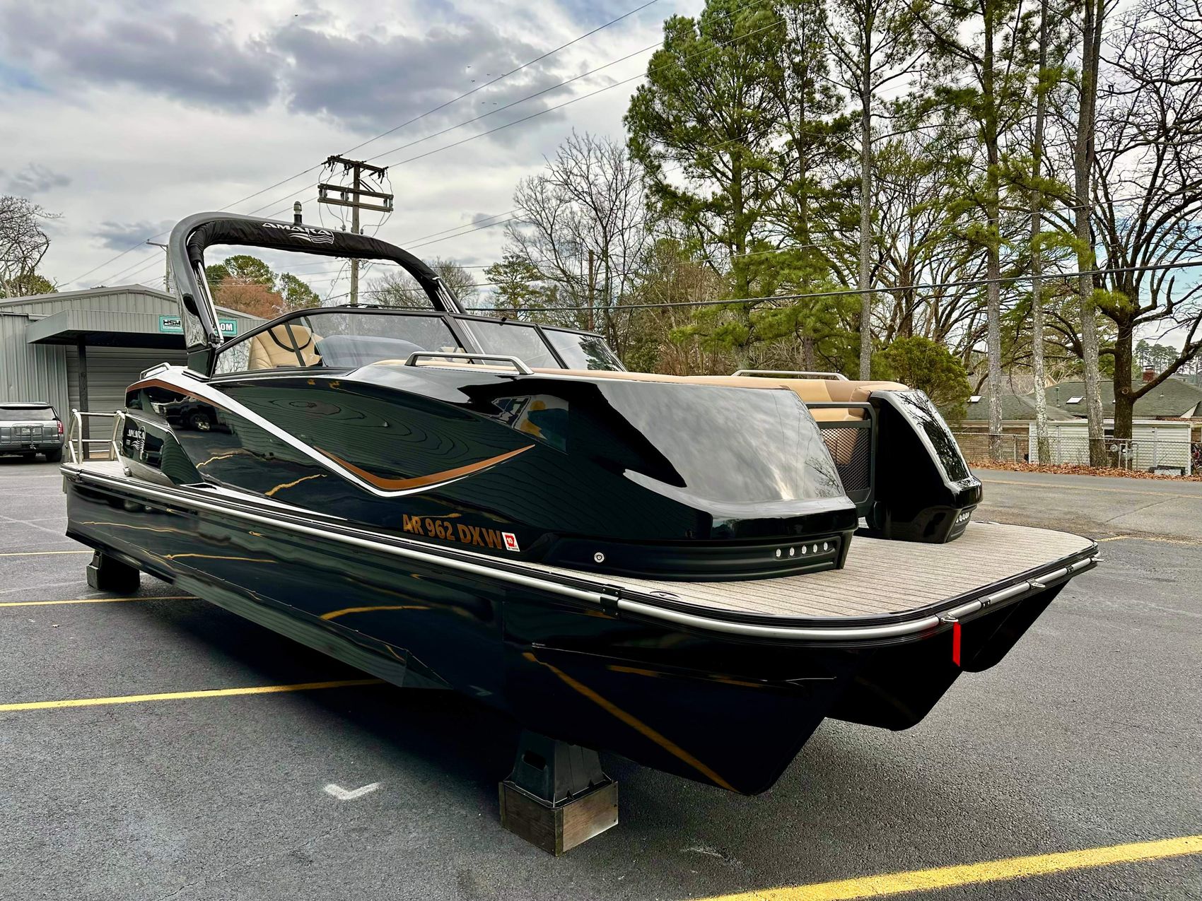Stunning Black Fiberglass Triple Pontoon with Yamaha 425 XTO Motor