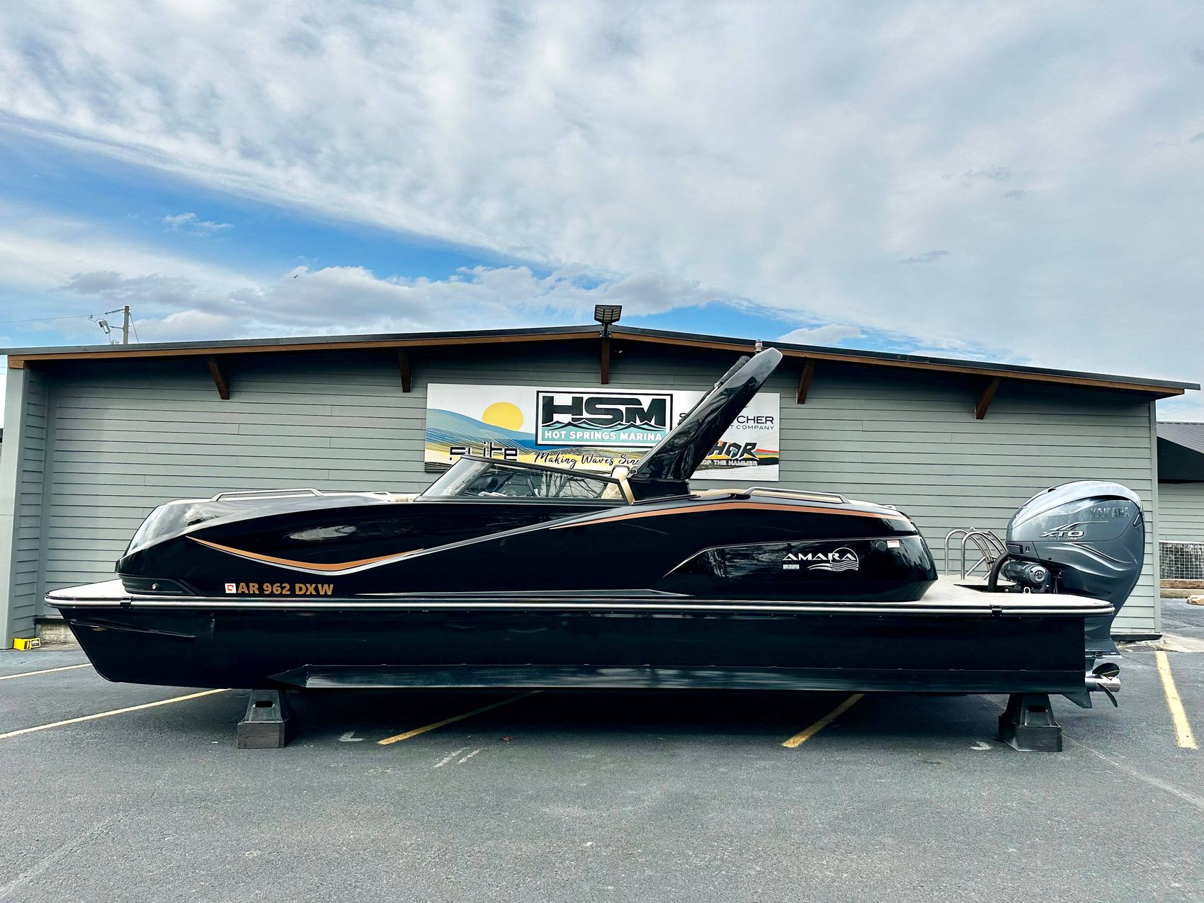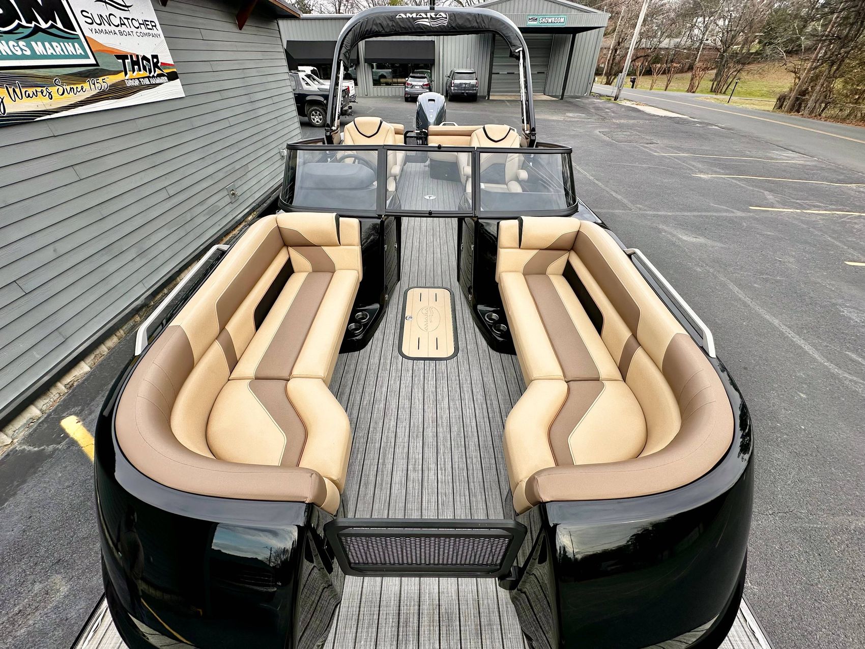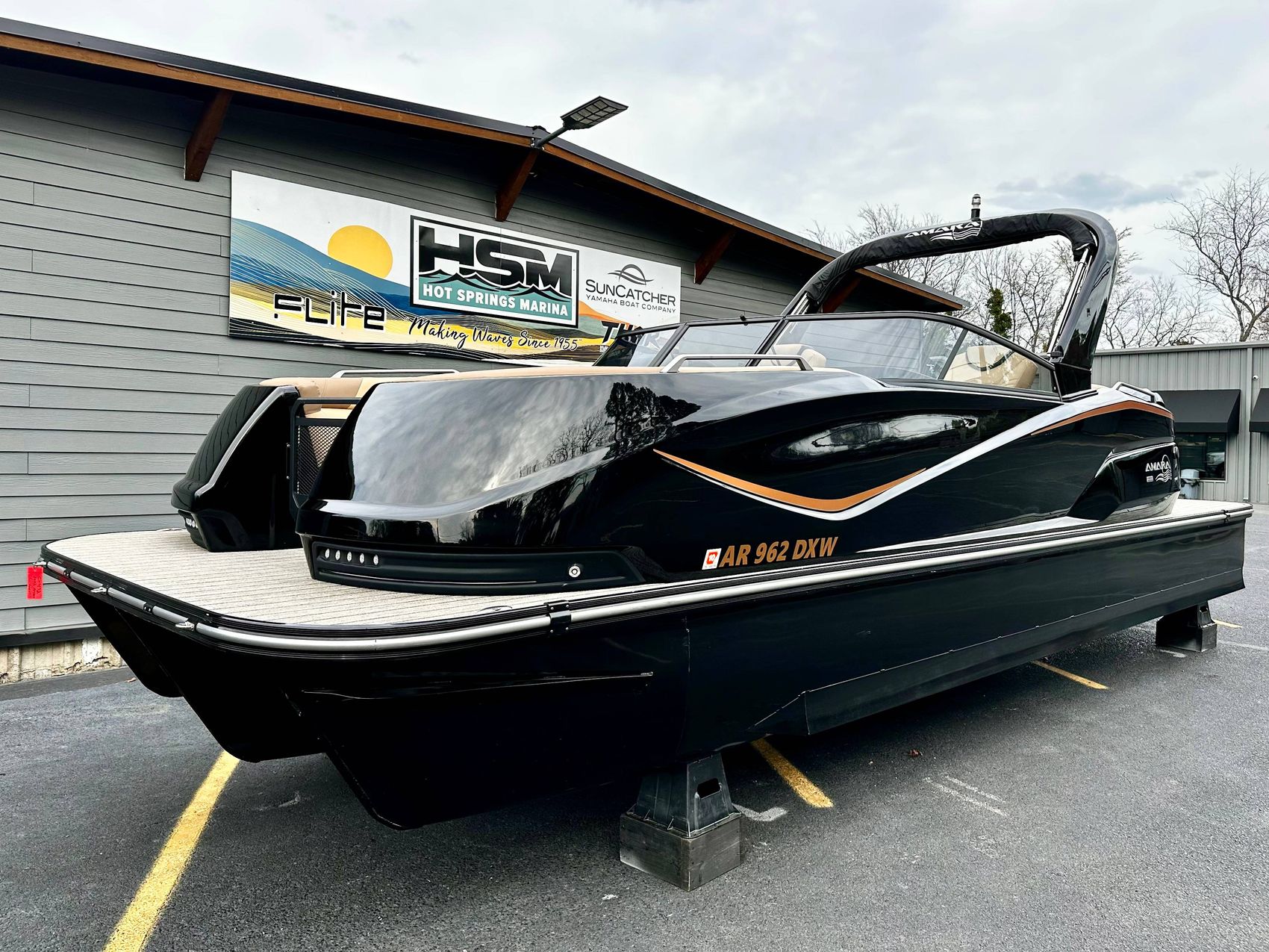 Stunning Black Fiberglass Triple Pontoon with Yamaha 425 XTO Motor