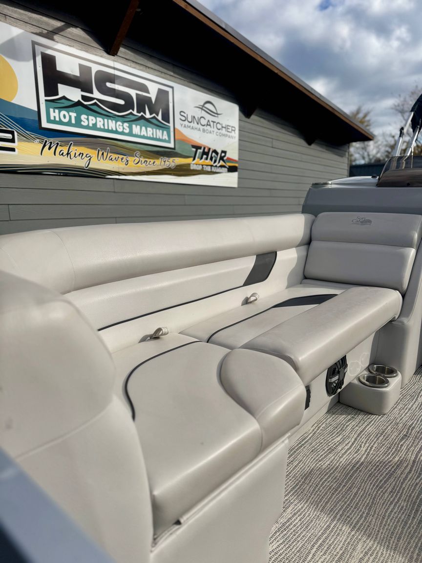 Presenting you the epitome of excellence in aquatic vessels, a modern, top-tier triple pontoon boat expertly engineered and designed not just to float, but to glide majestically across the water. This unrivaled marvel of naval engineering is luxuriously powered by a state-of-the-art Yamaha 175 SHO motor.